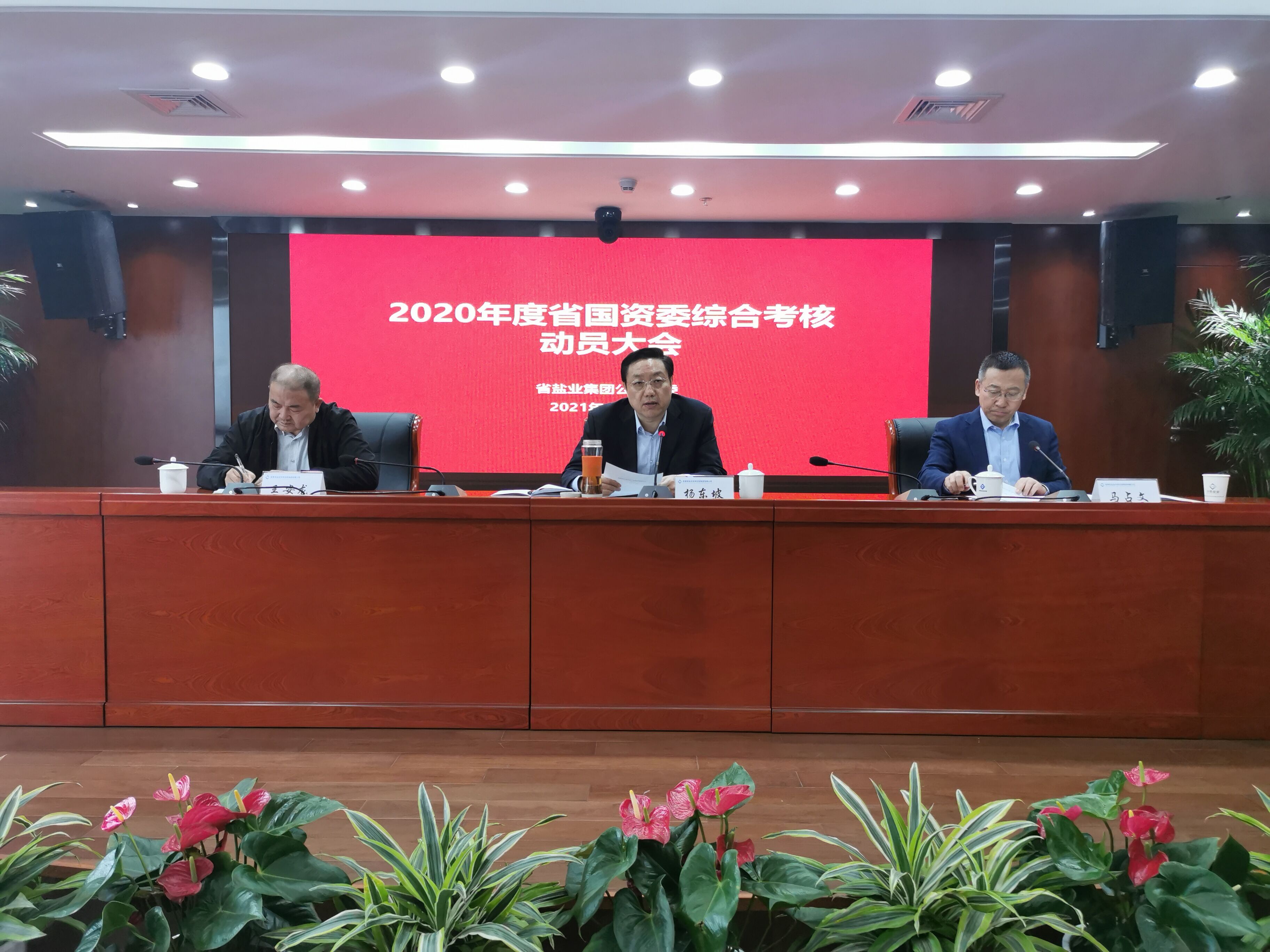4月20日,省國資委第二考核組到省鹽業集團,對集團領導班子和領導人員開展2020年度綜合考核。考核組組長、省國資委黨委委員、副主任楊東坡出席動員會議并講話。集團公司黨委書記、董事長馬占文主持會議并代表領導班子作2020年度工作總結報告。考核組有關成員出席會議。集團公司領導班子及黨委成員、各直屬(控股)公司主要負責人、本部中層管理人員及職工代表參加會議。