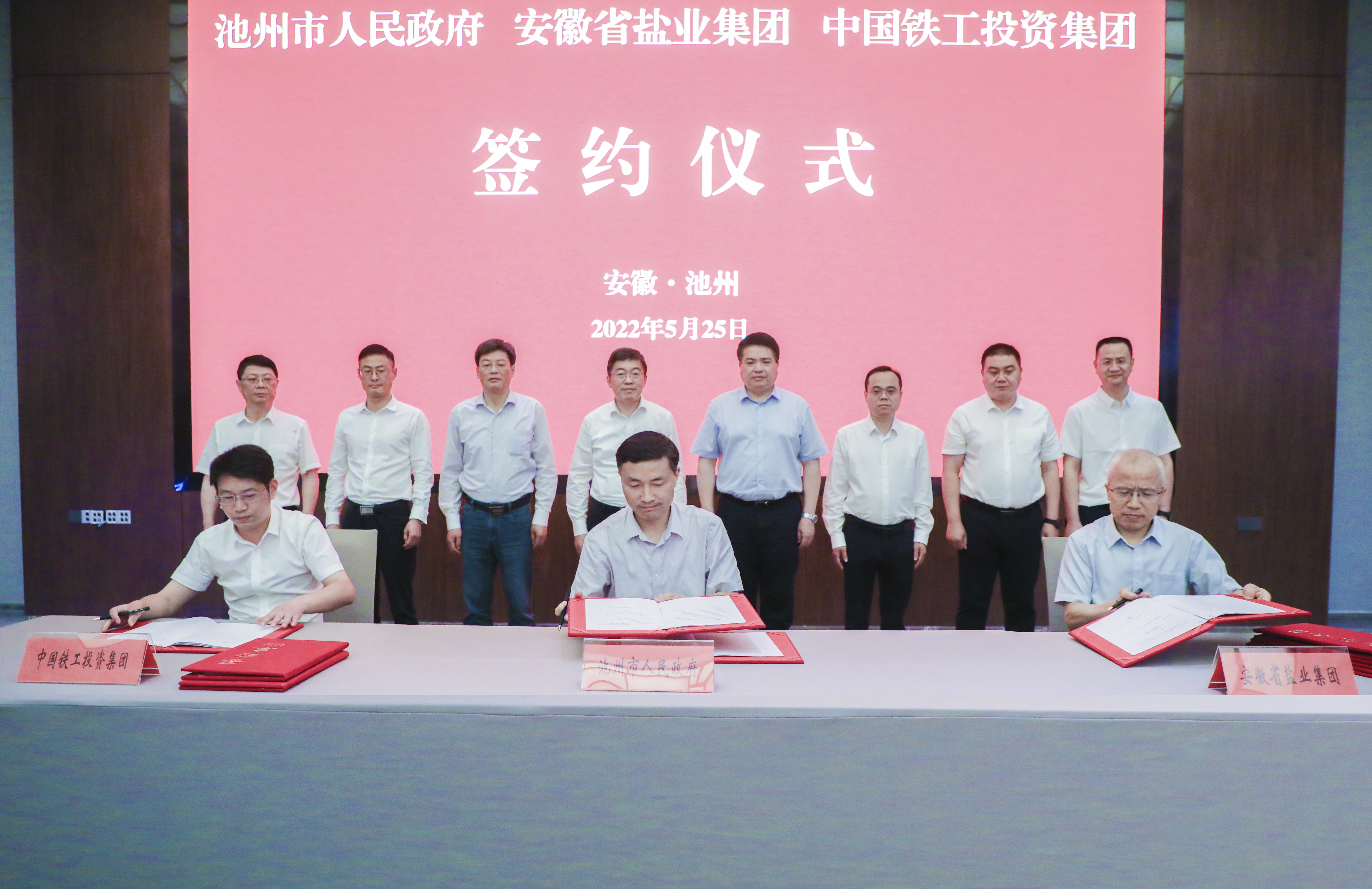 5月25日下午,省鹽業(yè)集團、中國鐵工投資集團與池州市政府舉行工作座談,并簽署戰(zhàn)略合作協(xié)議。省鹽業(yè)集團黨委書記、董事長羅太忠,池州市委副書記、市長朱浩東,中國鐵工投資集團副總經(jīng)理、投資總監(jiān)蘭書燕出席并見證簽約。省鹽業(yè)集團黨委委員、副總經(jīng)理余保山,池州市副市長胡軍保,中國鐵工投資集團華東區(qū)域總經(jīng)理劉天明代表三方簽訂戰(zhàn)略合作協(xié)議。