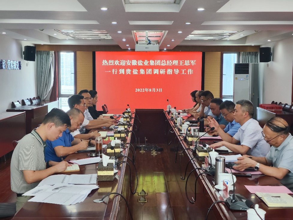 8月3日,王思軍一行拜訪了貴鹽集團,并與貴鹽集團黨委書記、董事長任建生,黨委副書記、副董事長、總經理梅桂等座談交流。期間,王思軍介紹了省鹽業集團的經營與改革發展等情況,并重點介紹了發展生態環保以及健康養老等新興產業的做法,表達了在環保治污、健康養老、鄉村振興以及現代農業等領域進一步加強合作的意愿。王奇介紹了鹽改以來在穩市場、調結構、促轉型等方面的經驗和做法。任建生對省鹽業集團近年來在推動改革轉型方面的嘗試表示了敬佩,認為有很多值得學習的地方,并表示希望雙方進一步加強了解,互通有無,加快推動合作落地。