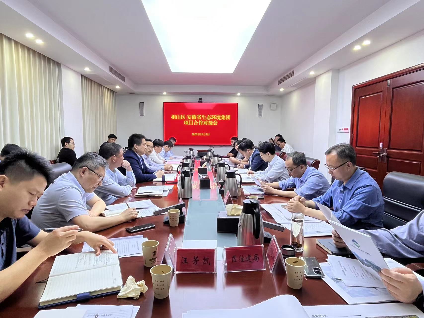 朱龍介紹了相山區(qū)經(jīng)濟社會發(fā)展基本情況,推介了與集團公司意向合作項目有關情況。他表示,相山區(qū)生態(tài)環(huán)境綜合治理等方面需求巨大,省生態(tài)環(huán)境集團在環(huán)境綜合治理、生態(tài)修復、城市更新等方面優(yōu)勢明顯,雙方合作空間廣闊,希望雙方緊密聯(lián)系,加快推進重點項目合作,打造生態(tài)環(huán)境領域企地合作樣板,實現(xiàn)共贏發(fā)展。