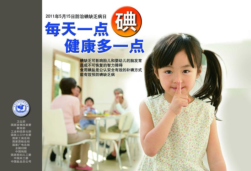2011年碘缺乏病防治海報使用說明: 2011年防治碘缺乏日宣傳海報(家庭版、西部版)的印刷電子版,是使用Photoshop軟件制作的分層文件,分辨率為300像素點,成品尺寸為570 mm×840mm。各地可根據宣傳需求適當調整并印刷使用。 該平面海報版權歸衛生部所有。電子文件內所有圖像資料可無償用于防治碘缺乏宣傳教育,但不得用于其他內容的宣傳或商業行為。